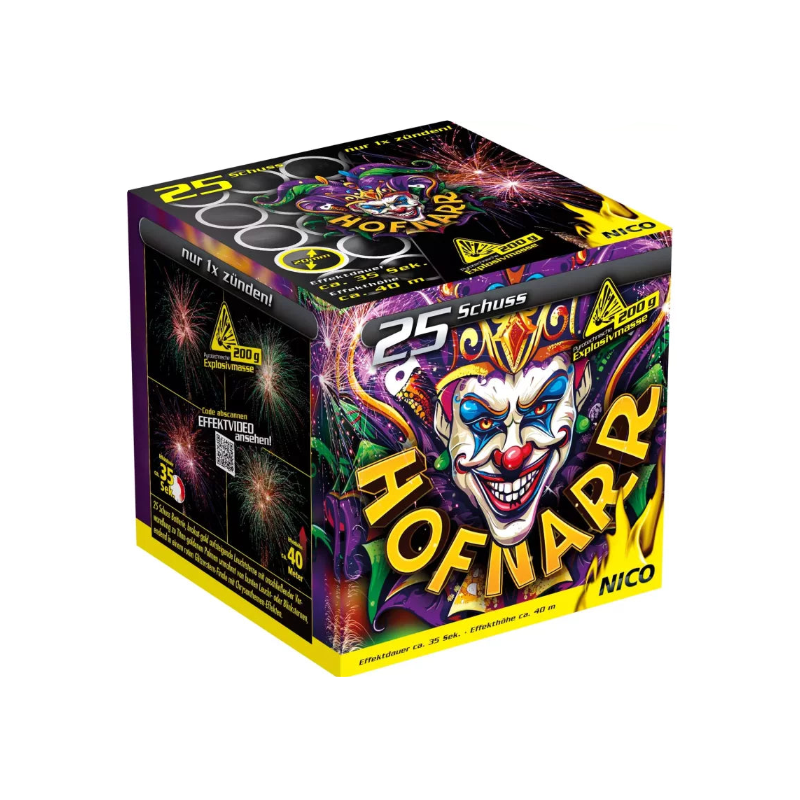 25 Schuss Batterie, brokat-gold aufsteigende Leuchtsterne mit anschließender Verwandlung zu Titan-goldenen Palmen umrahmt von bunten Leucht- oder Blinksternen, endend in einem roten Glitzerstern-Finale mit vielen Chrysanthemen-Effekten.